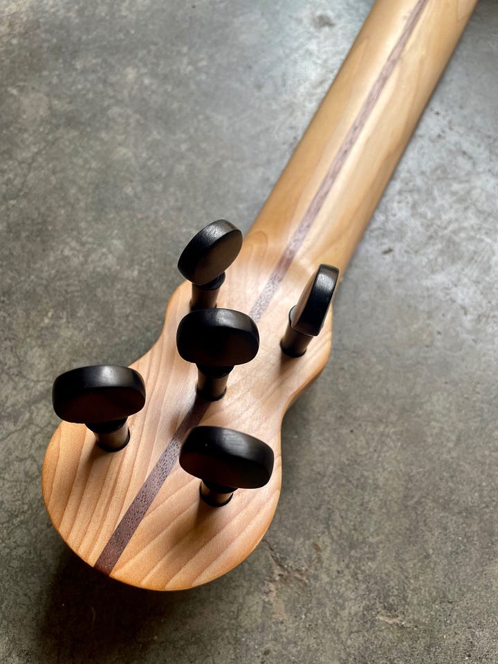 #999- Curly Port Orford Cedar and Curly Walnut Five String Tenor Ukulele