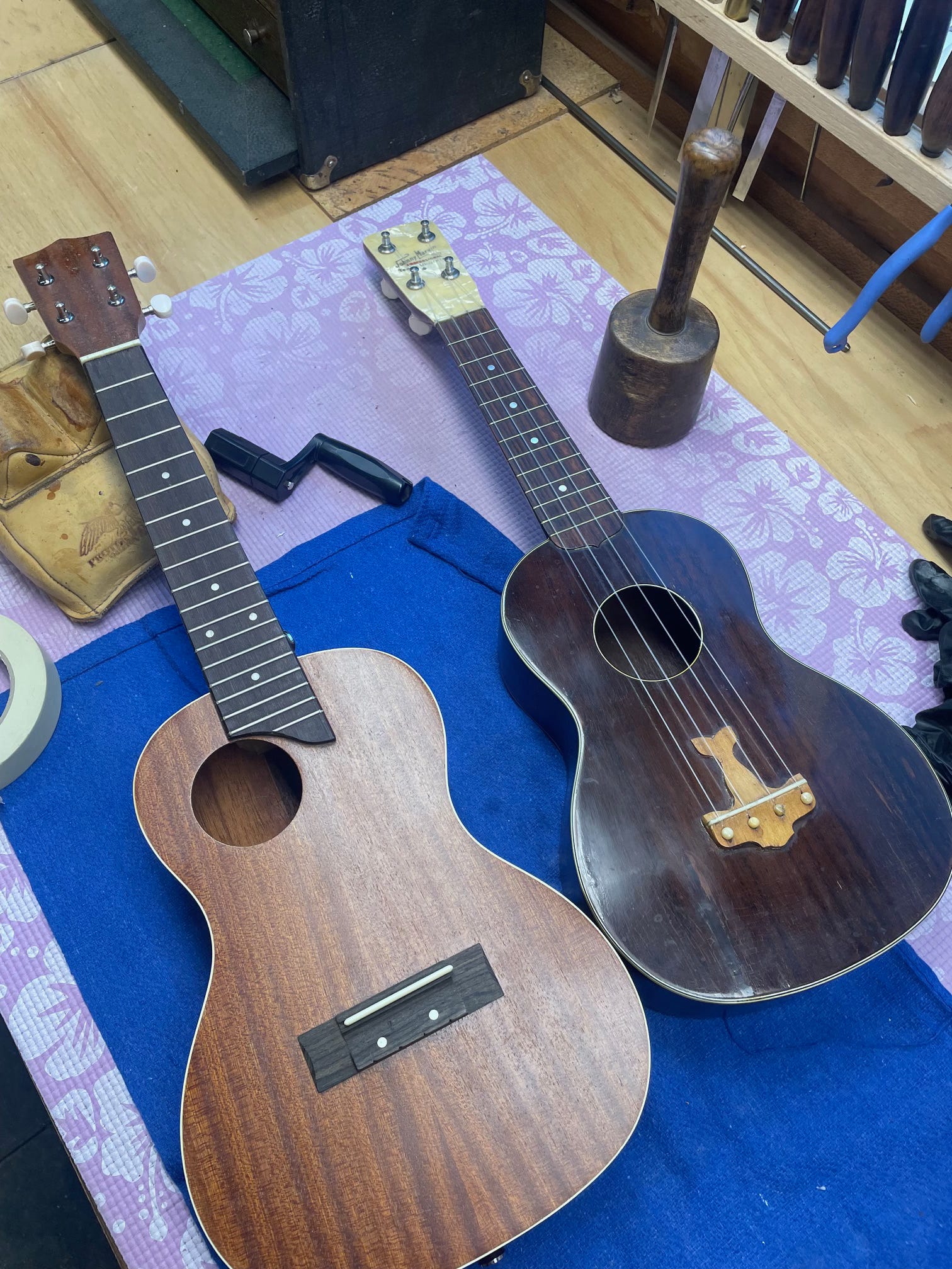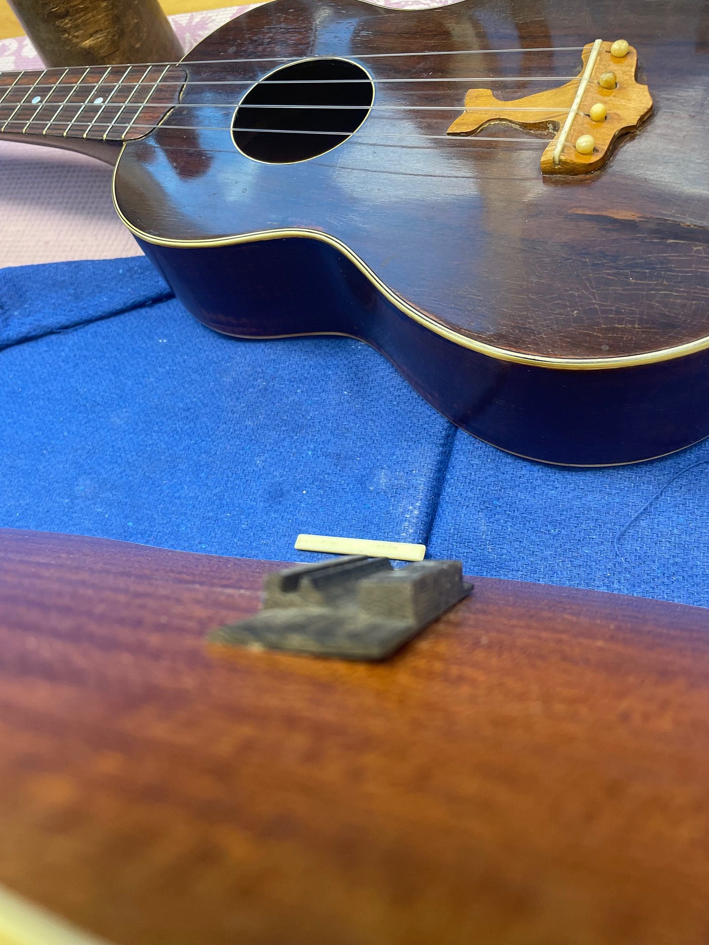 So, which is the more important uke/customer? One is an interesting historical uke, needing extra care and attention to do the job correctly. It is from a long term customer with more work to send me. The other is a local student, with strong community ties with a $50 uke needing $100 of work. She is hoping to have this uke for her first class, beginning her musical journey and hoping for a Beansprout in the future. I guess they both even out, actually. My labor and the knowledge of my craft, given to me by my craft mentors/ancestors, are equally needed in both cases. It is not a question of which is more important, but how to fit these in around my custom build schedule.