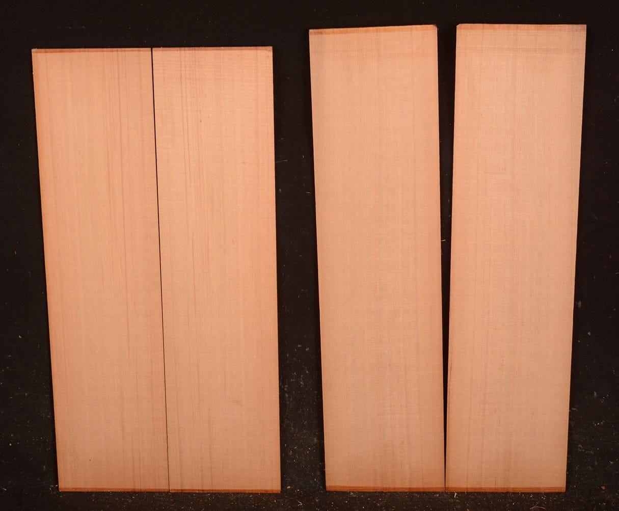 Redwood- Redwood is almost as dark sounding as Western Red Cedar, but has a clearer presence and a little “snap” to the sound. It is very stiff for its weight and works well on any size instrument. It is a balanced top wood, with a solid mix of high and low overtones.